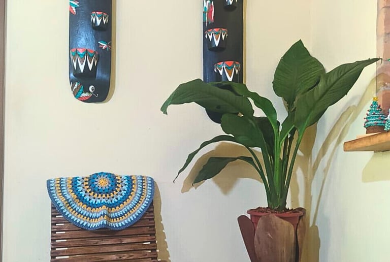 Decoração com objetos artesanais de baixo impacto ambiental.